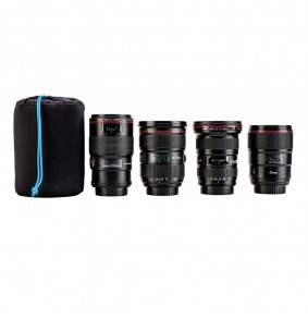 Minkštas neopreno maišelis, sukurtas apsaugoti zoom objektyvus iki 6 colių ilgio, tokius kaip Nikon arba Sony 24-70mm 2.8 su atvirkštine gaubtu. Jame yra saugus raištelio uždarymas ir lengvas dizainas, leidžiantis lengvai laikyti didesniuose krepšiuose.