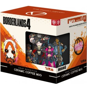 Juodas keraminis puodelis su 450 ml talpa, įkvėptas Borderlands. Tinka tik plauti rankomis, nenaudoti mikrobangų krosnelėje.
