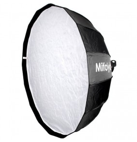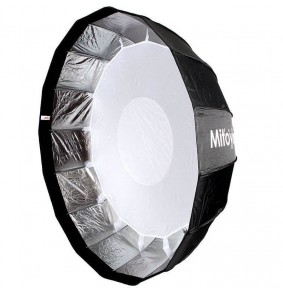 Softbox su 105 cm skersmeniu, skirtas studijinei fotografijai, turi Bowens tvirtinimą, kuris užtikrina suderinamumą su įvairia apšvietimo įranga. Jame yra du difuzoriai, kurie užtikrina švelnų šviesos paskirstymą, ir tinklelis, leidžiantis geriau kontroliuoti šviesos kryptį.