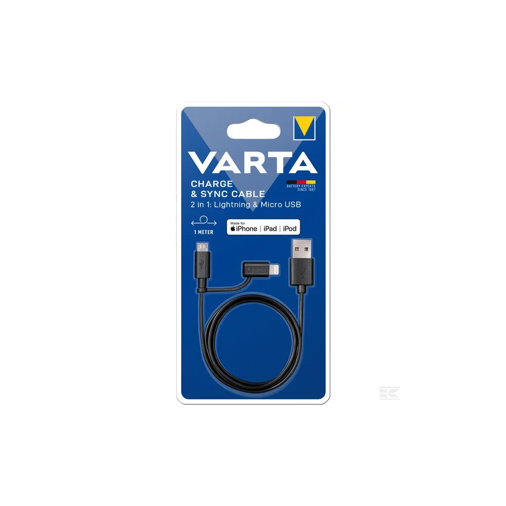 Įkrovimo ir duomenų sinchronizavimo laidas - Varta Charge & sync cable 2in1: Lightning & Micro USB . VARTA siūlo platų įkrovimo priedų asortimentą, įskaitant laidus, adapterius, automobilinius įkroviklius ir dar daugiau! Patikimas veikimas kartu su naujausiomis technologijų tendencijomis, specialiai sukurtas palengvinti kasdienį vartotojo gyvenimą.