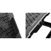 - Pagamintas iš lengvo metalinio tinklelio ir plastiko, jis išlaiko net didžiausius ir sunkiausius nešiojamuosius kompiuterius bei optimaliai išsklaido šilumą.