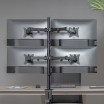 Tvirtos plieninės konstrukcijos stovas stabiliai išlaiko keturis 17-32 colių ekranus, sveriančius iki 9 kg. Skirtas tvirtinimui ant stalviršio.
