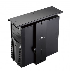Juodas po stalu kompiuterio laikiklis su reguliuojamu aukščiu ir maksimaliu svorio pajėgumu iki 10 kg. Lengva montuoti su pridedamu montavimo komplektu ir spaustuku.