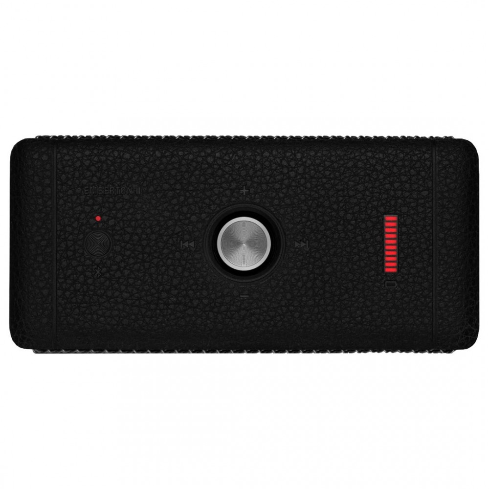 Marshall Emberton II Juodas ir Plieninis yra belaidis Bluetooth garsiakalbis, turintis 30 valandų baterijos veikimo laiką ir 3 valandų įkrovimo laiką. Jis pasižymi stereo garsu su dviem garsiakalbiais, Bluetooth ryšio atstumu iki 10 metrų ir matmenimis 160 mm x 76 mm x 68 mm, sveria 700 g.