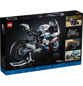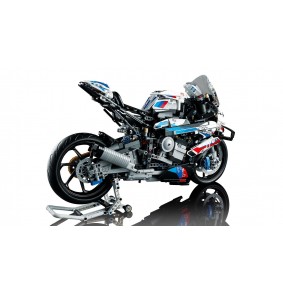 LEGO Technic rinkinys su BMW M 1000 RR motociklu. Jame yra realistiški detalės ir veikiantys mechanizmai, įskaitant 3 cilindrų variklį ir grandininį pavarą.