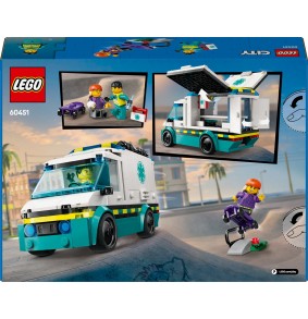 LEGO CITY 60451 Greitosios pagalbos automobilio rinkinys apima 184 elementus ir yra tinkamas vaikams nuo 5 metų. Pakuotės matmenys: 262 mm ilgio, 191 mm pločio ir 70 mm aukščio.