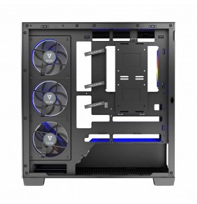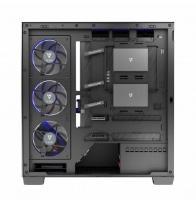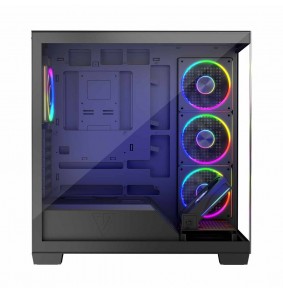 MODECOM VOLCANO STELLAR ARGB MIDI 5F JUODAS turi grūdinto stiklo šoną, palaiko micro ATX, Mini-ITX ir ATX motinines plokštes, o didžiausias vaizdo plokštės ilgis yra 42 cm. Jame yra penki integruoti aušinimo ventiliatoriai, kabelių valdymo galimybės ir keli USB prievadai jungčiai.