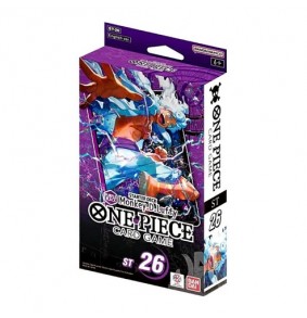 One Piece ST26 pradedančiųjų kortų rinkinys apima 50 kortų, 1 lyderio kortą ir booster'į. Rinkinys siūlo įvairius personažus ir tipus, todėl jis tinka naujiems žaidėjams ir kolekcionieriams.