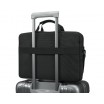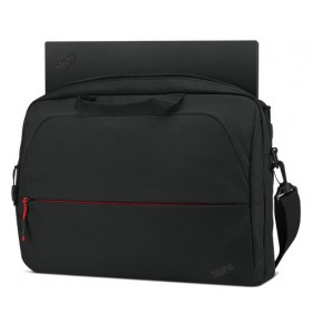 Lenovo ThinkPad Essential 16 colių Toploader krepšys pagamintas iš poliesterio ir PVC, skirtas nešiojamiesiems kompiuteriams, kurių ekranas yra iki 40,6 cm (16"). Jis turi monochrominę juodą išorę ir papildomą priekinę kišenę.