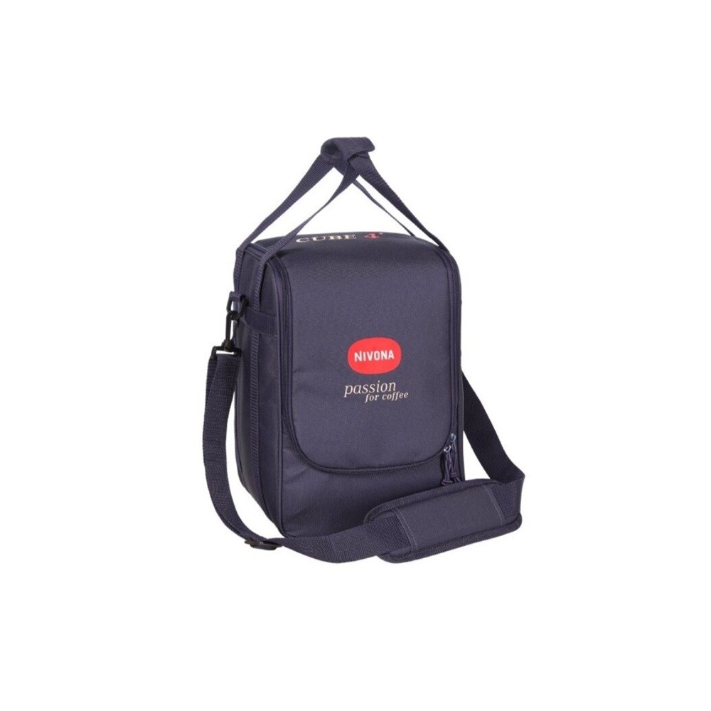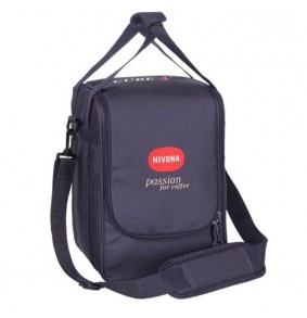Nešiojamas krepšys, sukurtas kavos aparatams, tamsiai mėlynos spalvos. Svoris 650 g, matmenys: 230 mm ilgis, 350 mm aukštis ir 230 mm plotis.