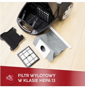 MPM MOD-54 dulkių siurblys su maišeliu turi 1.5 L dulkių talpą ir HEPA filtrą, užtikrinantį efektyvų valymą kietuose paviršiuose ir kilimuose. Jame yra 5 m laidas, guminiai ratai lengvam manevravimui ir įvairūs priedai universaliems valymo darbams.