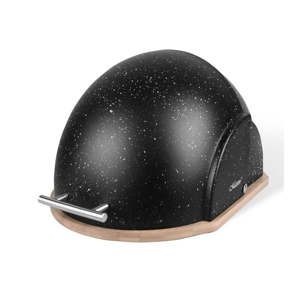Maestro MR-1678G-BLACK Duonos dėžė turi pakeliamą dangtį ir neslystančias kojas, pagaminta iš plastiko ir bambuko medienos juodos spalvos. Jos matmenys yra 350 x 200 x 250 mm, o svoris - 1.28 kg.