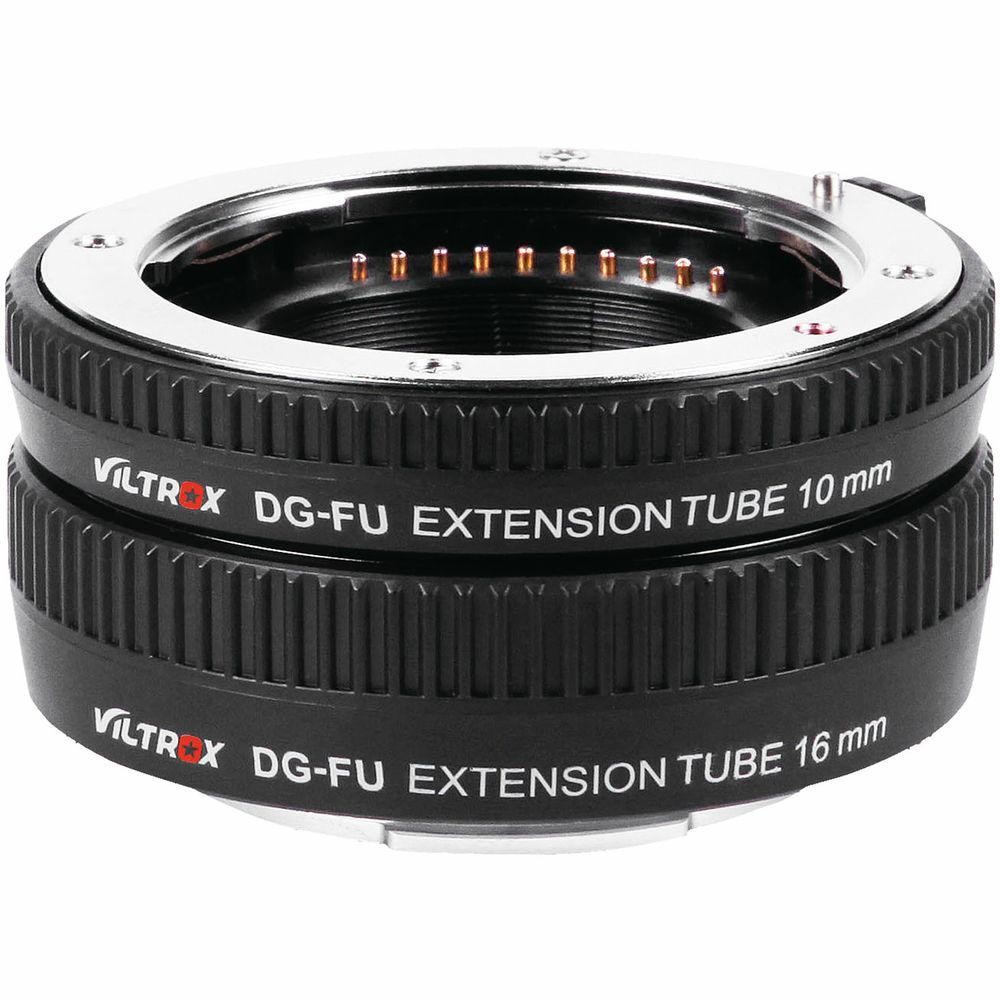 Viltrox DG-FU prailginimo vamzdžiai skirti makrofotografijai su Fuji X-mount kameromis. Jie palaiko elektroninę komunikaciją automatinio ekspozicijos ir autofokuso funkcijoms, kai naudojami su suderinamais objektyvais.