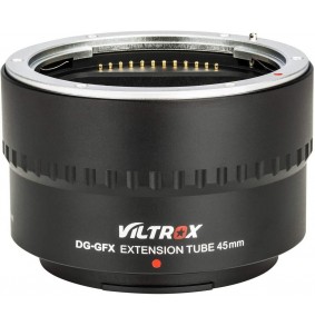 Viltrox DG-GFX 45mm tęstinis vamzdis sukurtas Fujifilm GFX serijos kameroms, kad būtų galima fotografuoti makro. Jame yra elektroniniai kontaktai automatinėms ekspozicijos ir fokusavimo korekcijoms.