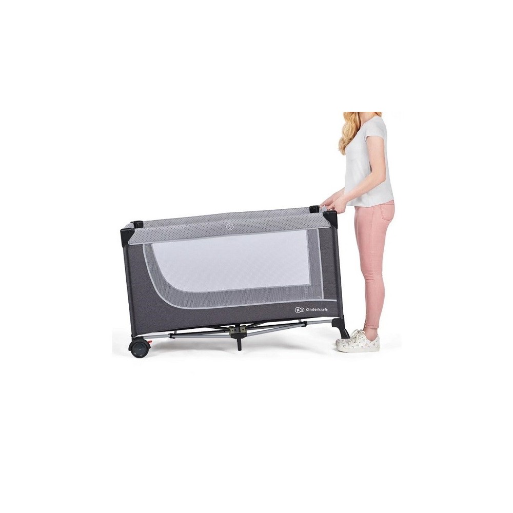KinderKraft kelioninė lovelė LEODY pilkos spalvos yra sulankstoma, turi plaunamą užvalkalą, langelį stebėjimui ir neslidžias kojas. Komplekte yra čiužinys ir dvi ratukų poros, užtikrinančios lengvą judėjimą.