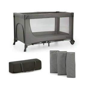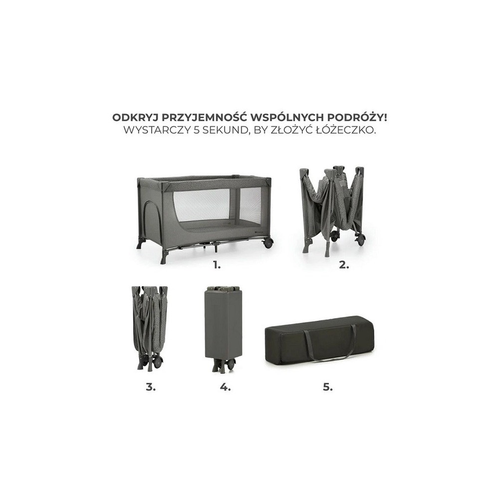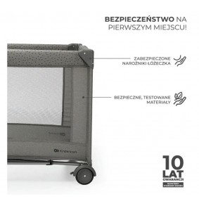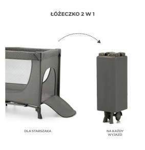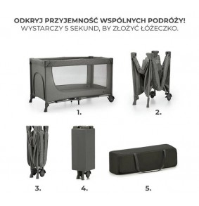 KinderKraft kelioninis lopšys JOY 2 tamsiai pilkos spalvos tinka kūdikiams nuo gimimo ir turi sulankstomą konstrukciją su ratukais, kad būtų lengva judėti. Jame yra plaunama užvalkalas, čiužinys ir stebėjimo langelis, leidžiantis stebėti kūdikį.