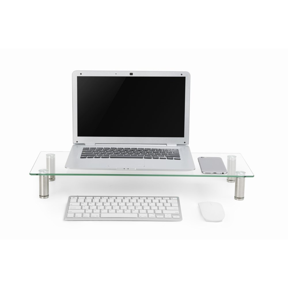 Gembird MS-TABLE-GM-01 yra vidutinio dydžio stiklinis monitoriaus stovas, pagamintas iš plieno ir grūdinto stiklo, palaikantis maksimalų svorį iki 20 kg. Jo matmenys yra 580 mm pločio, 210 mm gylio ir 90 mm aukščio, skirtas laisvai stovinčiam montavimui ant stalo.