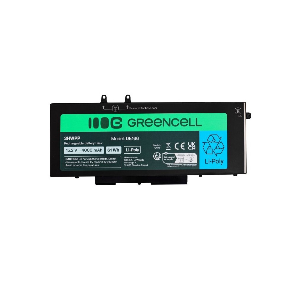 GREEN CELL BATERIJA DE166 yra ličio polimerų baterija, suderinama su Dell įrenginiais. Jos talpa yra 4000 mAh, o įtampa - 15.2 V.