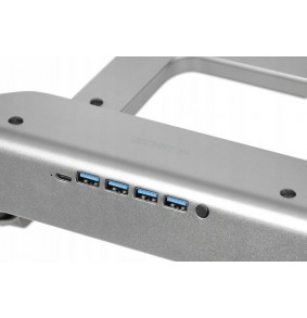 Aušinimo stovas palaiko nešiojamuosius kompiuterius iki 17.6" ir turi keturis USB prievadus. Pagamintas iš aliuminio, jis turi gumines kojas stabilumui užtikrinti ir komplektuojamas su USB kabeliu.