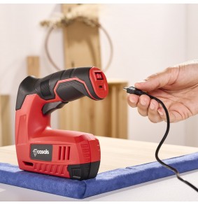 CASALS CSG3620 4V Belaidis Klijuoklis turi 1300 mAh akumuliatorių, maksimalų juostos gylį 12 mm ir gali klijuoti 40 kartų per minutę. Komplekte yra USB įkroviklis, 200 klijų ir 200 nagų, o svoris yra 0.7 kg.