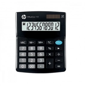 HP OC 112 biuro skaičiuotuvas turi 12 skaitmenų LCD ekraną ir 24 mygtukus kompaktiškame kišeniniame dizainas. Jis veikia su baterija ir saulės energija, turi automatinio išjungimo funkciją energijos taupymui.