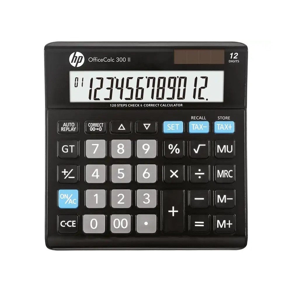 HP biuro skaičiuotuvas HP-OC 300 II/INT BX turi 12 skaitmenų ekraną ir 35 mygtukus. Jis veikia su CR2032 baterija ir saulės energija, matmenys 158x151x29mm.