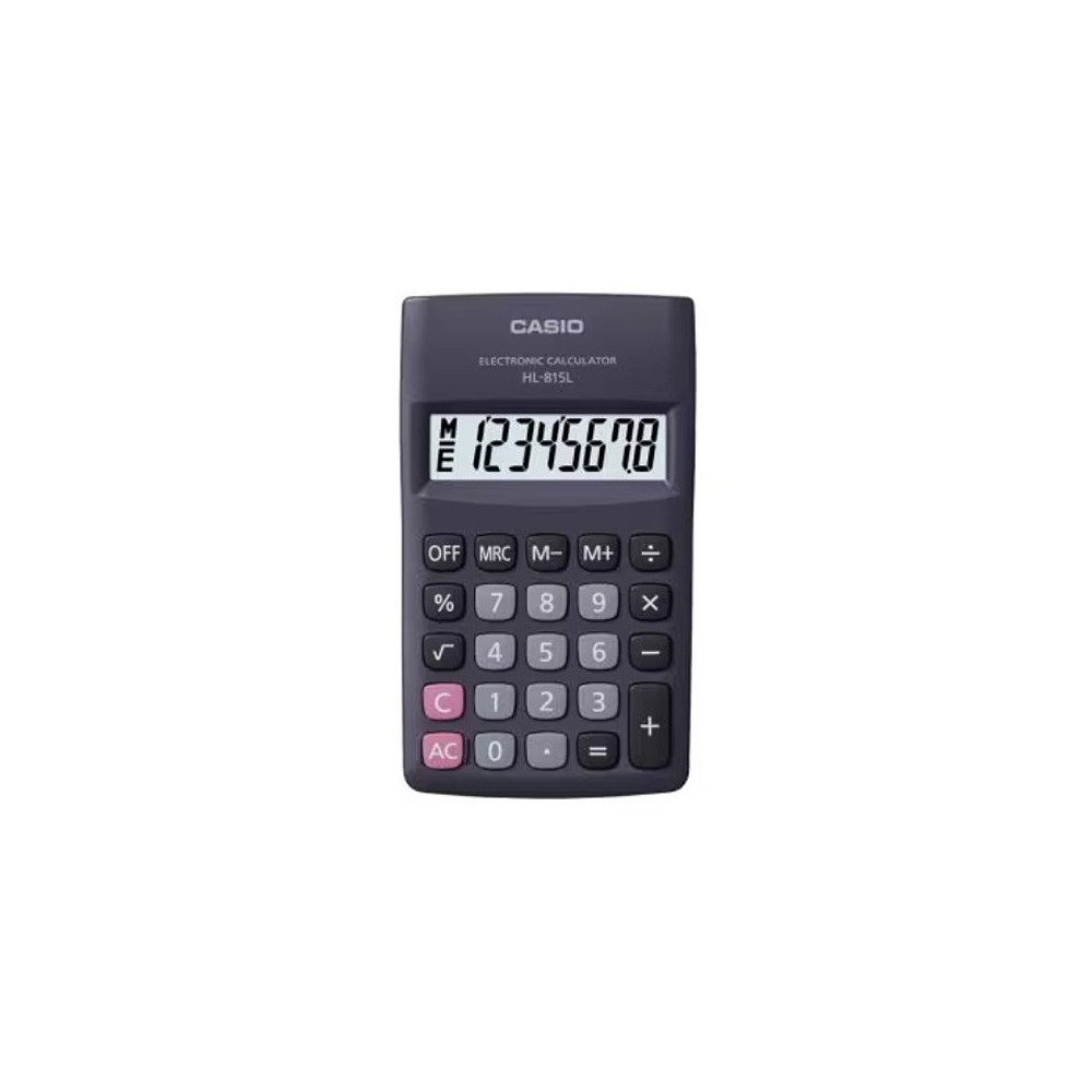 CASIO HL-815L-BK BOX kišeninis skaičiuotuvas turi 8 skaitmenų ekraną ir kompaktišką dizainą, kurio matmenys yra 69.5x118mm. Jis veikia su viena AA baterija ir turi 24 mygtukus pagrindiniams skaičiavimams.