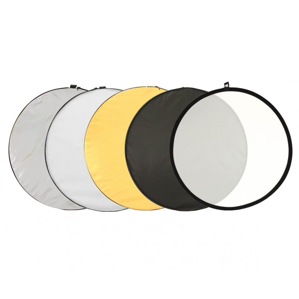 5-in-1 atšvaitas turi 60 cm skersmenį ir apima penkias skirtingas paviršius: difuzorių ir atspindinčius paviršius auksinės, sidabrinės, baltos ir juodos spalvos. Pagamintas iš patvarių medžiagų, jis lengvai sulankstomas transportavimui.
