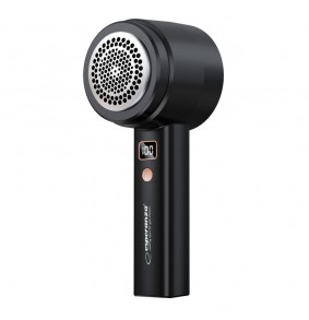 Esperanza ECS012 - efektyvus belaidis drabužių skutimo prietaisas su nerūdijančio plieno peiliu, patogiu įjungimo/išjungimo mygtuku ir elegantiška juoda spalva.