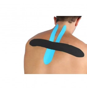 KINESIO pagaminta iš 97% medvilnės ir 3% elastano, prieinama mėlynos spalvos. Jos plotis yra 50 mm, o ilgis - 5 m, todėl ją lengva uždėti.