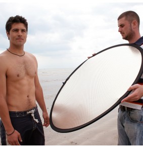 Atšvaitas Lastolite Silver/White 95 cm yra lengvai suskleidžiamas iki trečdalio savo dydžio.