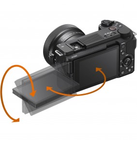 - 3,0 colių jutiklinis LCD ekranas gali būti visiškai pasuktas, leidžiant vartotojams matyti save įrašant - tai būtina funkcija vlogams.