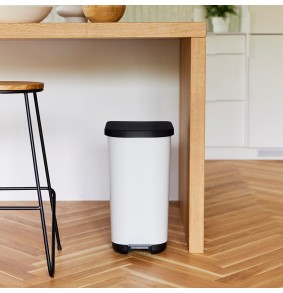 ROTHO Ribo Balta pedalinė šiukšliadėžė turi 35 litrų talpą ir pagaminta iš plastiko. Jos aukštis yra 513 mm, plotis 285 mm, o gylis 400 mm, svoris 2 kg.