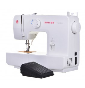 SIUVIMO MAŠINA SINGER PROMISE 1408 turi 8 siuvimo raštus ir 4 žingsnių mygtuko skylę. Komplekte yra būtini priedai, tokie kaip mygtuko siuvimo pėdelė, universali pėdelė ir pėdos valdymo pedalai.