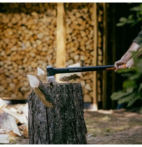 Fiskars X32 skaldymo kirvis turi 815 mm ilgio, kalimo plieno ašmenis, sukurtus efektyviam medienos skaldymui. Jis turi lengvą FiberComp™ rankeną su SoftGrip™ zona, užtikrinančia komfortą ir kontrolę.