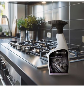 Frischer virtuvės valiklis tiekiamas 0.5L purškimo buteliuke, skirtas lengvam naudojimui valant virtuvę. Jis pagamintas iš plastiko ir turi būti naudojamas gerai vėdinamoje patalpoje, laikant toliau nuo vaikų ir vengiant kontakto su oda bei akimis.