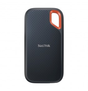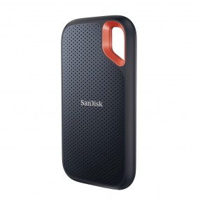 SanDisk 1TB Juodas yra didelės talpos nešiojamas išorinis kietasis diskas, skirtas didelių failų ir duomenų saugojimui keliaujant.