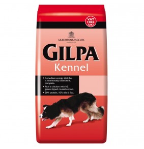 GILPA Kennel sausas šunų maistas tinka suaugusiems dideliems ir milžiniškiems veislėms, su pagrindiniu vištienos skoniu. Jame nėra sojų, cukraus, o baltymų kiekis sudaro 20%, supakuotas 15 kg maiše.