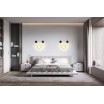 Elegantiška LED sieninė lemputė su juodu paviršiumi ir šiltai balta šviesa, ideali vidaus erdvėms.