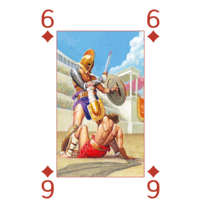 Neabejotinas Romos simbolis, Amžinasis miestas. Dalis istorijos, po atviru dangumi liudijantis senovės pasaulyje viešpatavusios imperijos pasididžiavimą ir galią. Jo sienose kovojo gladiatoriai, didžiausi pasaulio kariai. Šiame Severino Baraldi rinkinyje yra 54 žaidimų kortų kaladė, skirtos epinėms Koliziejaus kovoms žaidimo lentos mūšio lauke atkurti. Severino Baraldi menas,