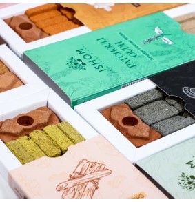 | Įtraukti Daiktai | 15 aromatinių baltojo šalavijo smilkalų plytelių ir molinis laikiklis |