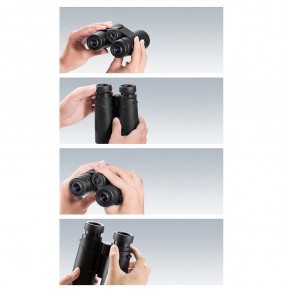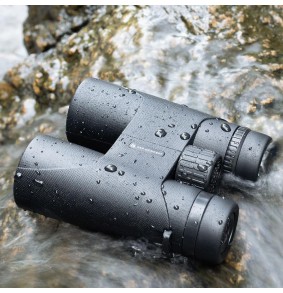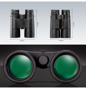 10x priartinimas su 42 mm objektyvo lęšiais ir BaK4 stiklu. IP66 klasė, atspari dulkėms ir drėgmei, su reguliuojamais akių kaušeliais ir dioptrijų reguliavimu.