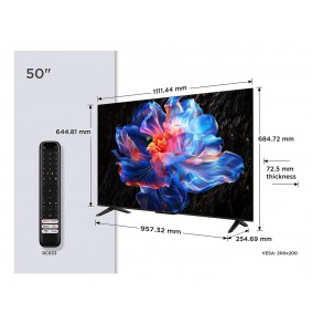 50 colių 4K Ultra HD Smart TV su Google TV operacine sistema, palaikanti HDR10 ir Dolby garso formatus. Ypatybės apima Wi-Fi ryšį, tris HDMI prievadus ir 60 Hz natūralų atnaujinimo dažnį.