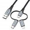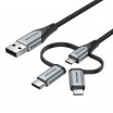| Modelis | USB 2.0 A Male į 3-in-1 Micro-B, USB-C, Lightning Male Kabelis |