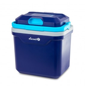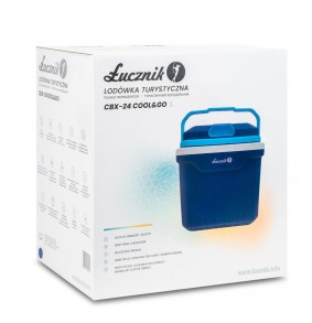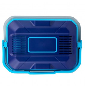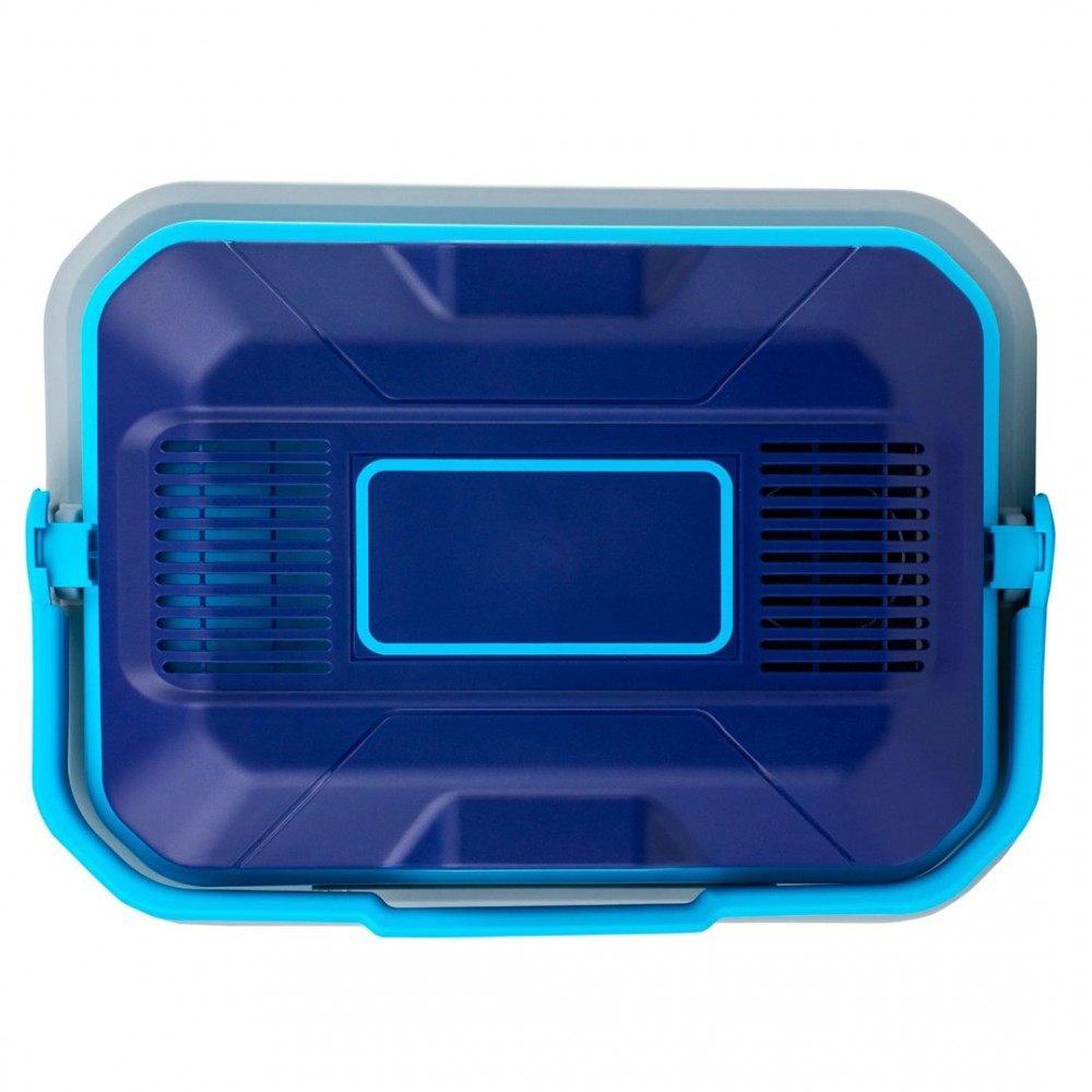Nešiojamas 24L automobilinis šaldytuvas su AC ir DC maitinimo galimybėmis. Svoris 4 kg, matmenys 436 mm x 406 mm x 306 mm.