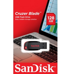 SanDisk Cruzer Blade USB atmintinė turi 128 GB talpos ir naudoja USB Type-A 2.0 jungtį. Ji yra suderinama su Windows ir Mac operacinėmis sistemomis bei pasižymi be dangtelio dizainu.