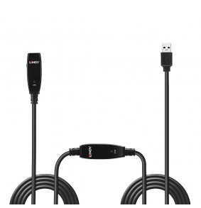 15m USB 3.0 aktyvus pratęsimas palaiko 5 Gbps pralaidumą ir yra suderinamas su USB 3.2, 3.1 Gen 1 ir 3.0 standartais. Laidas turi USB Type A Vyras jungtį viename gale ir USB Type A Moteris jungtį kitame, su patvariu ABS ir PVC apvalkalu.