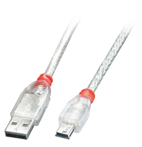 USB Type A Male į USB Mini-B Male kabelis, kurio ilgis 3m. Atitinka USB 2.0 standartus, leidžiančius duomenų perdavimo greitį iki 480Mbit/sec, ir turi 28AWG duomenims ir energijai.