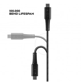 1 metro ilgio sustiprintas USB Type C į Lightning kabelis palaiko USB 2.0 su 480Mbps pralaidumu. Jis turi tvirtą PVC korpusą, tinuotus varinius laidus ir atitinka CE, UKCA bei MFi standartus.