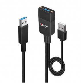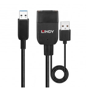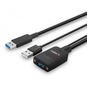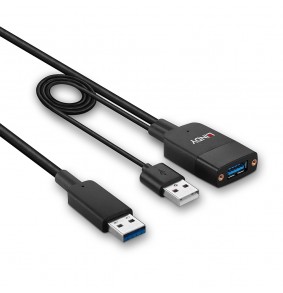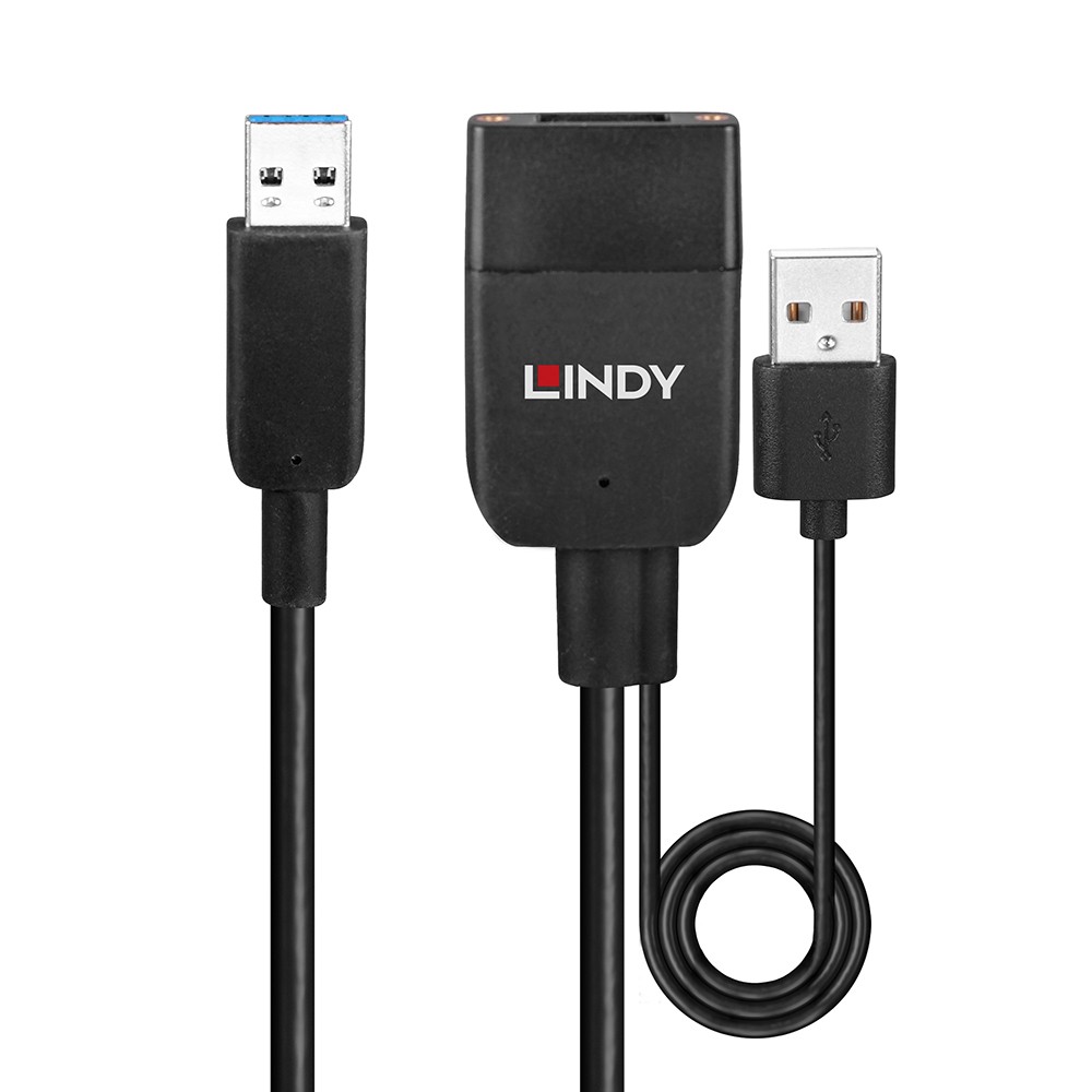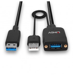 Pakuotės Turinys | 35m USB 3.2 Gen 2 hibridinis kabelis su fiksuotu 70cm USB maitinimo kabeliu Tipo A, Lindy vadovas |
